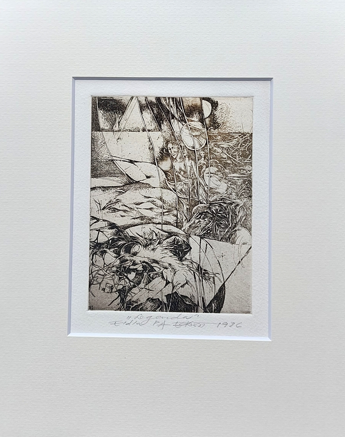 Legend, 1986, etching, 12x9 cm, e.d.a., passport size 25x20 cm