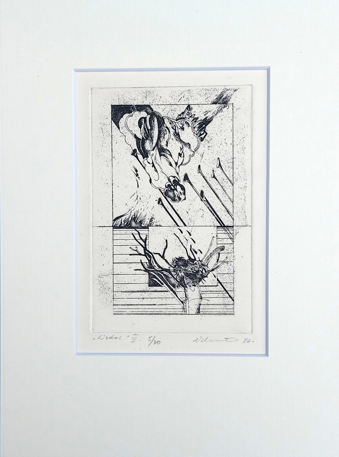 Nest III, 1982, etching, 5/30, 15x10 cm, mounted on paper, 27x20 cm
