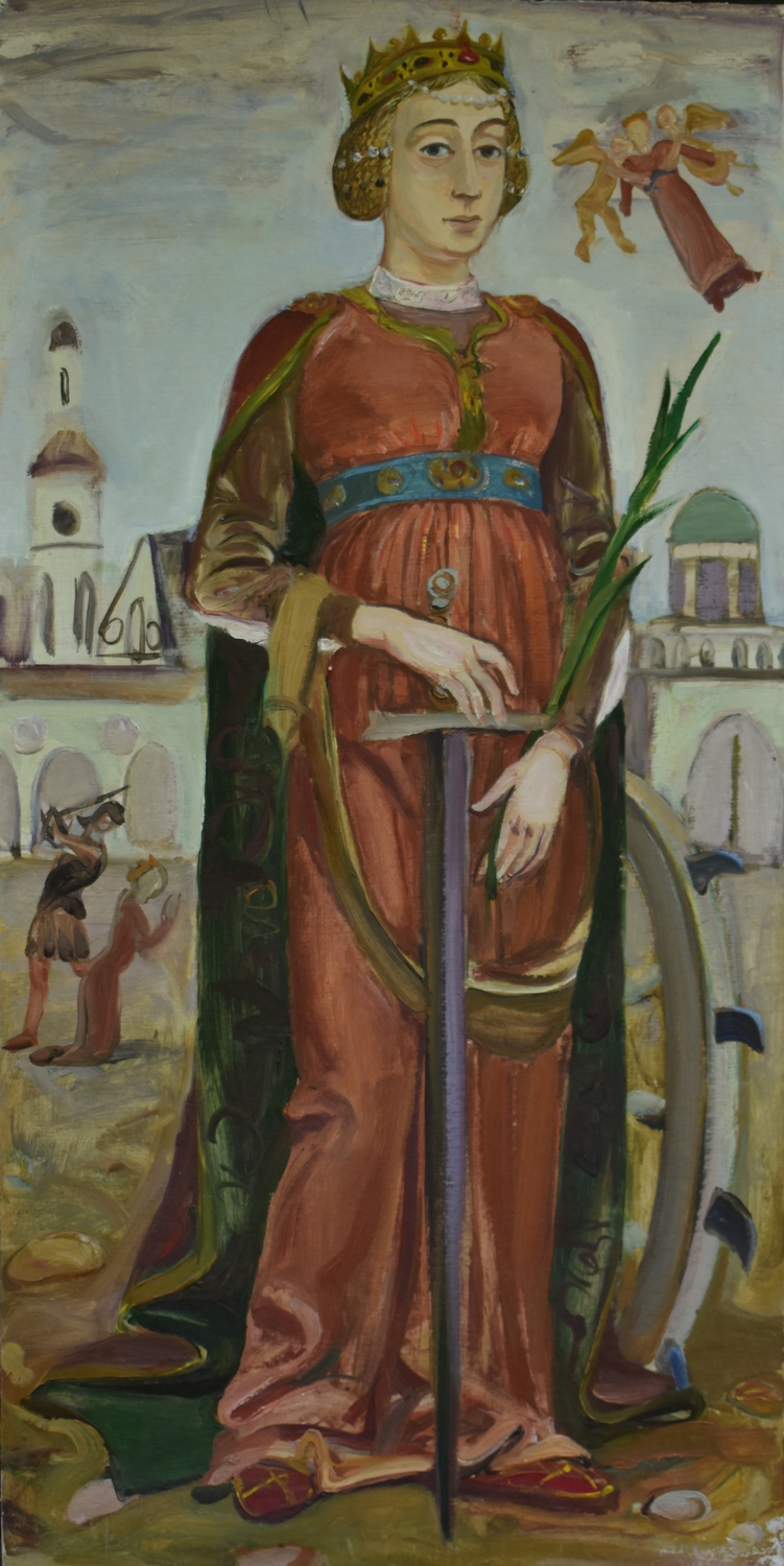 St. Catherine, 1991-1992, oil, cardboard, 80 x 40 cm
