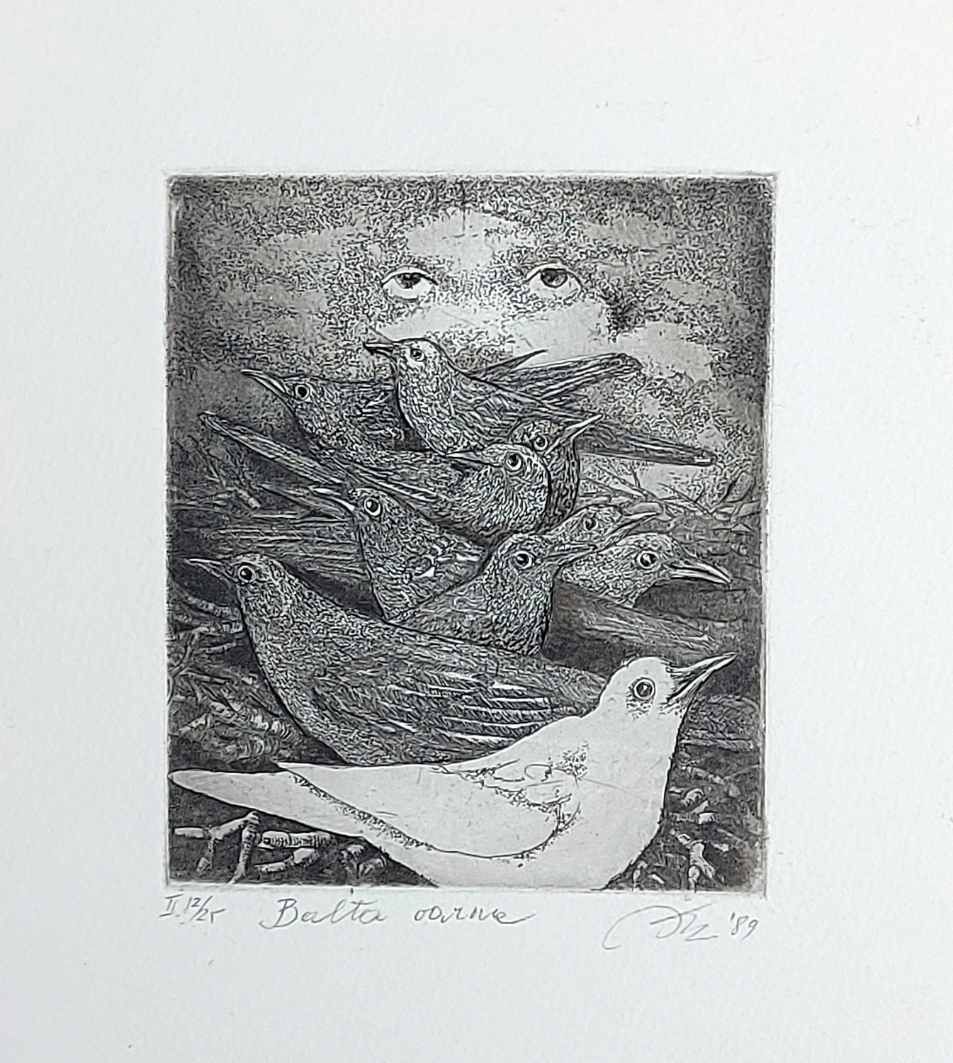 White Crow, 1989, etching, 10x8 cm, 12/25