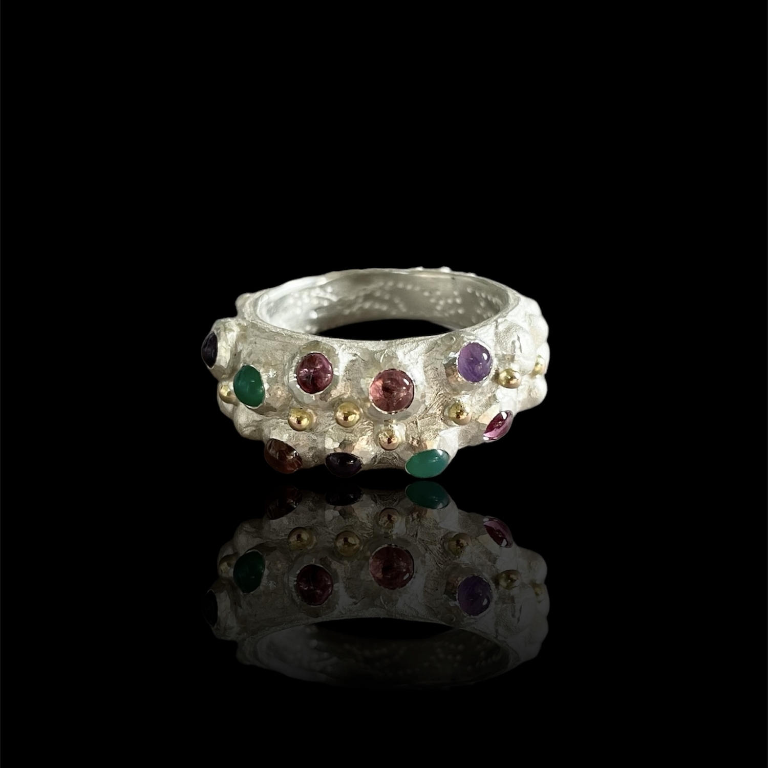Ring, Ag 925, 10.37g, Tourmaline, Amethyst, Onyx