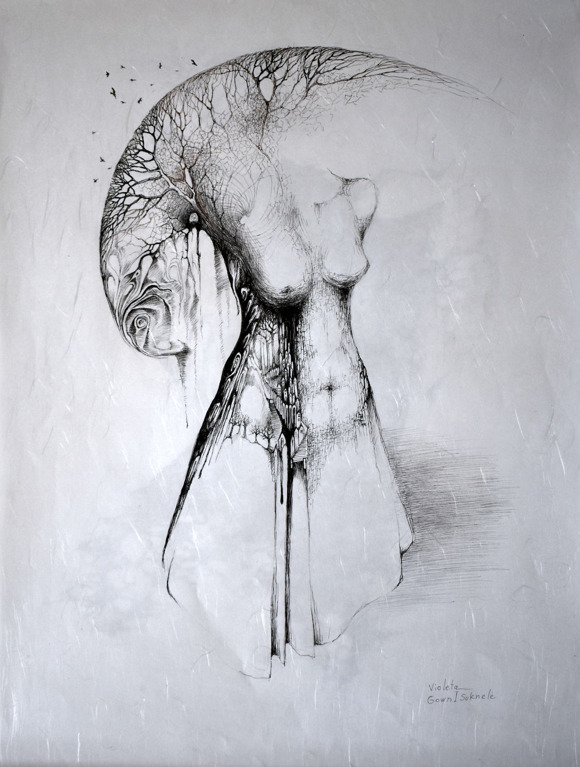 Dress I, 2021, paper, pencil, 60x42cm