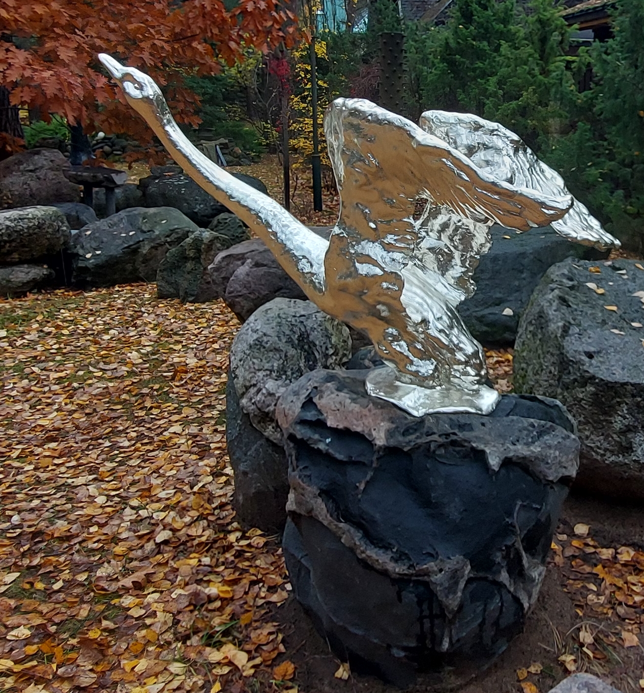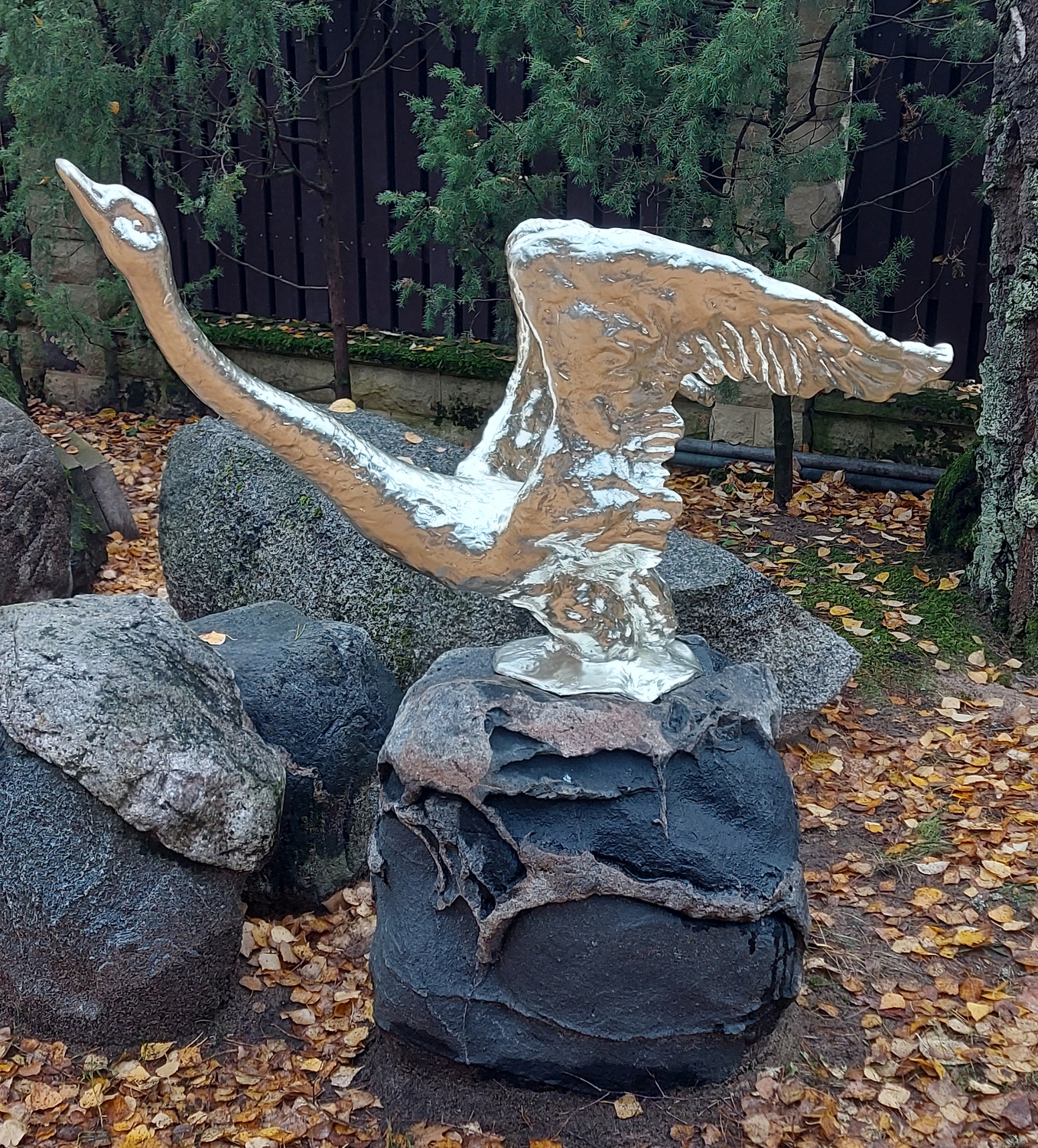 Swan, 2022, bronze, foil gilding, h 62x57x112 cm, pedestal h52x50x57 cm, 1/1