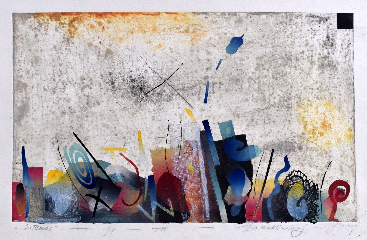 Sutemos, 2001, monotipija, 30x49 cm, 1/1