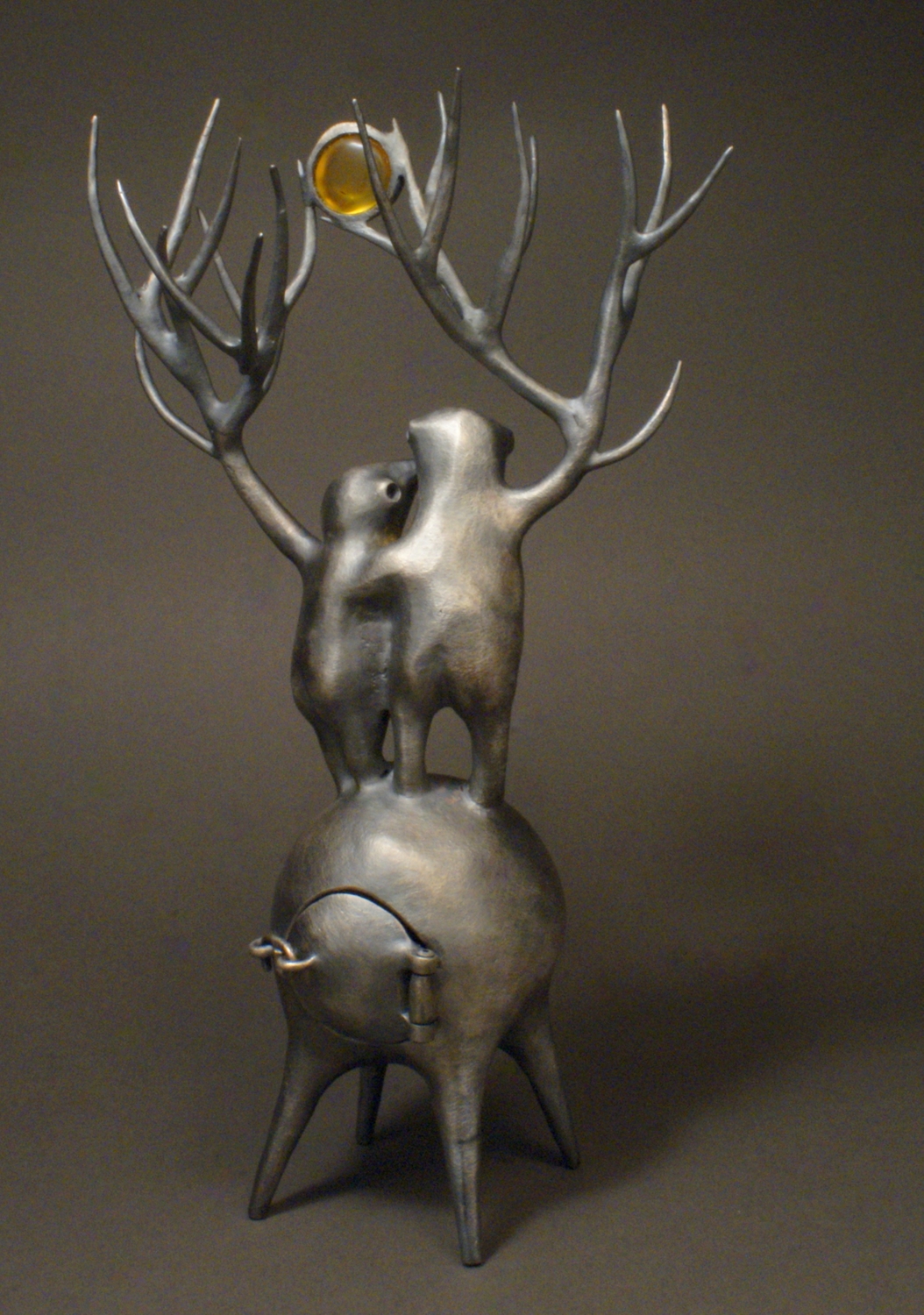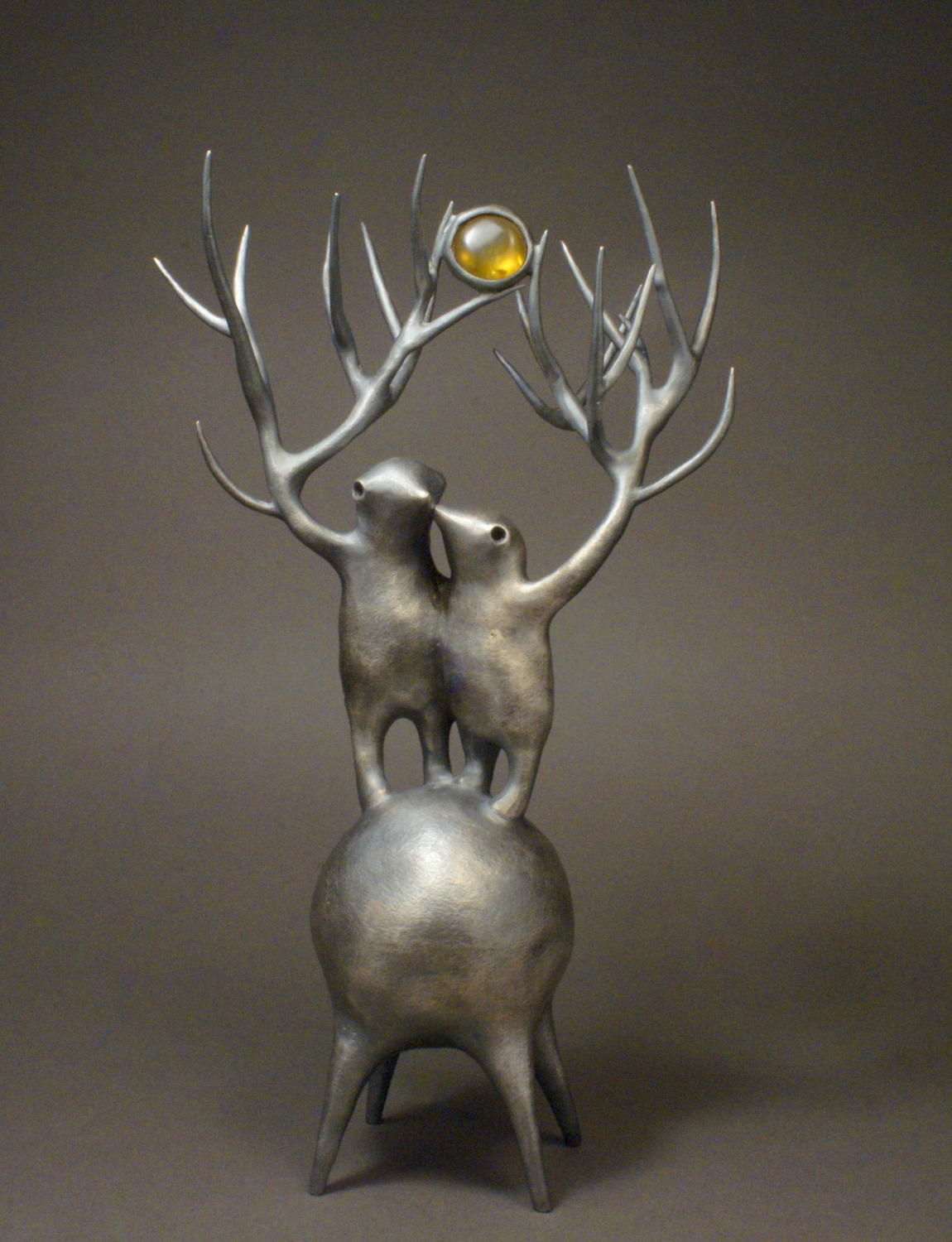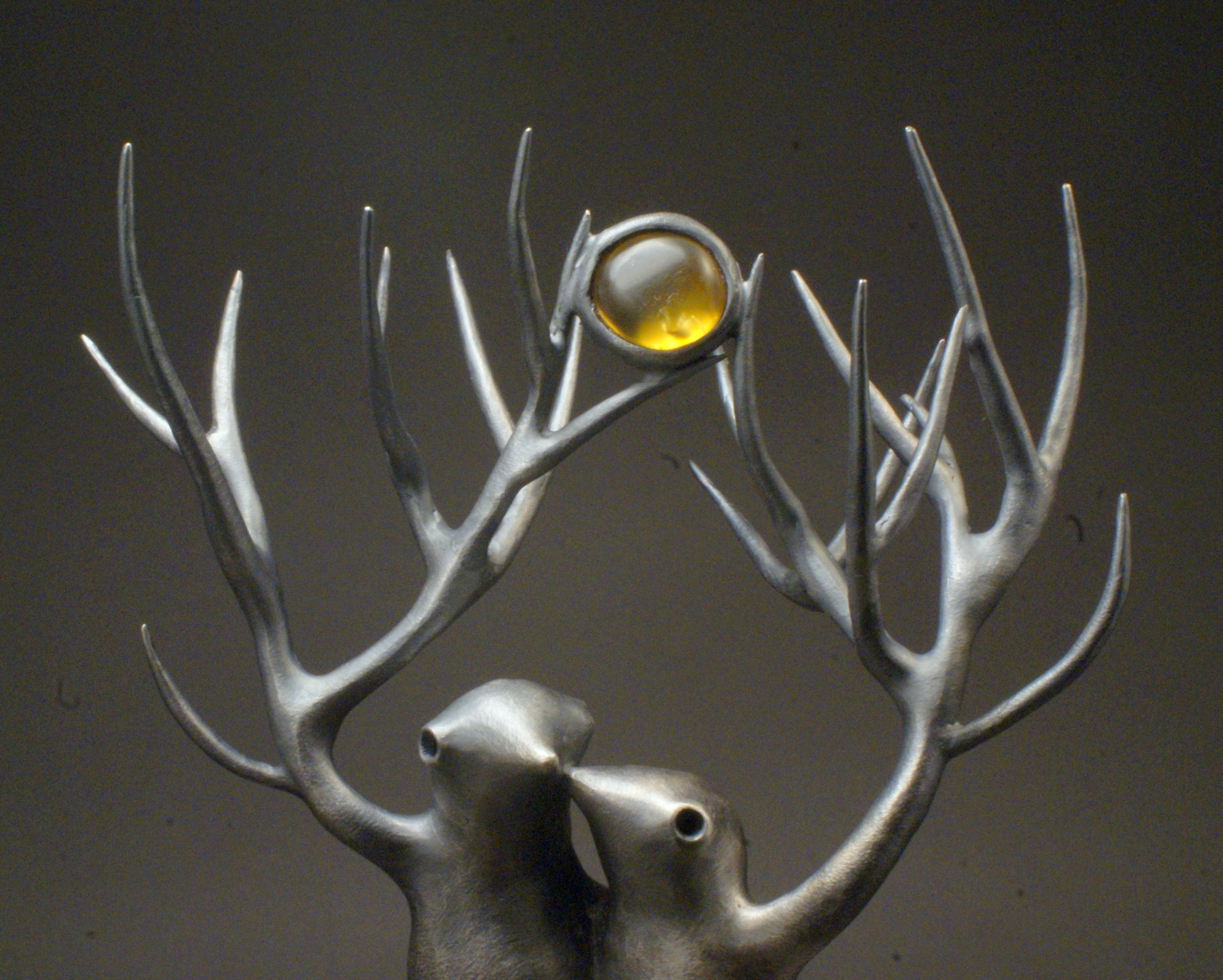 Šviesios mintys II, 2024, bronza, sidabravimas, gintaras su inkliuzu, h 22 cm, 1/1