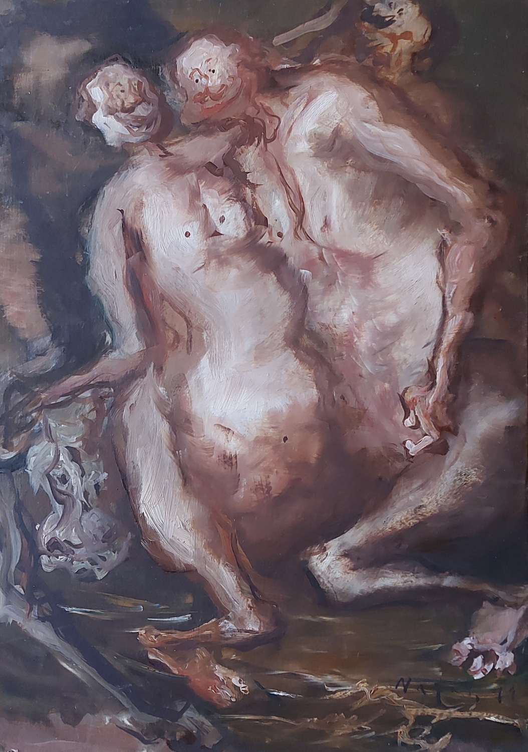 Galingi žmonės, 2011, kartonas, aliejus, 50x35 cm