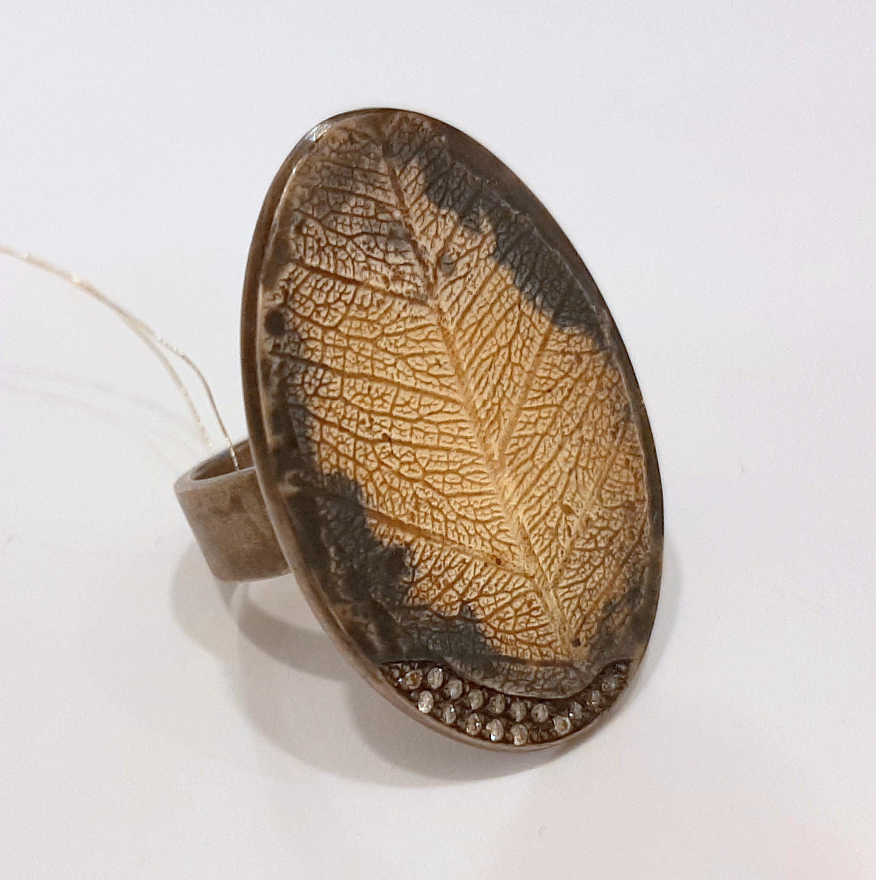 Žiedas „Lapas“, Ag 925, s. briliantai, 14,90g, D 19mm, 35x25mm