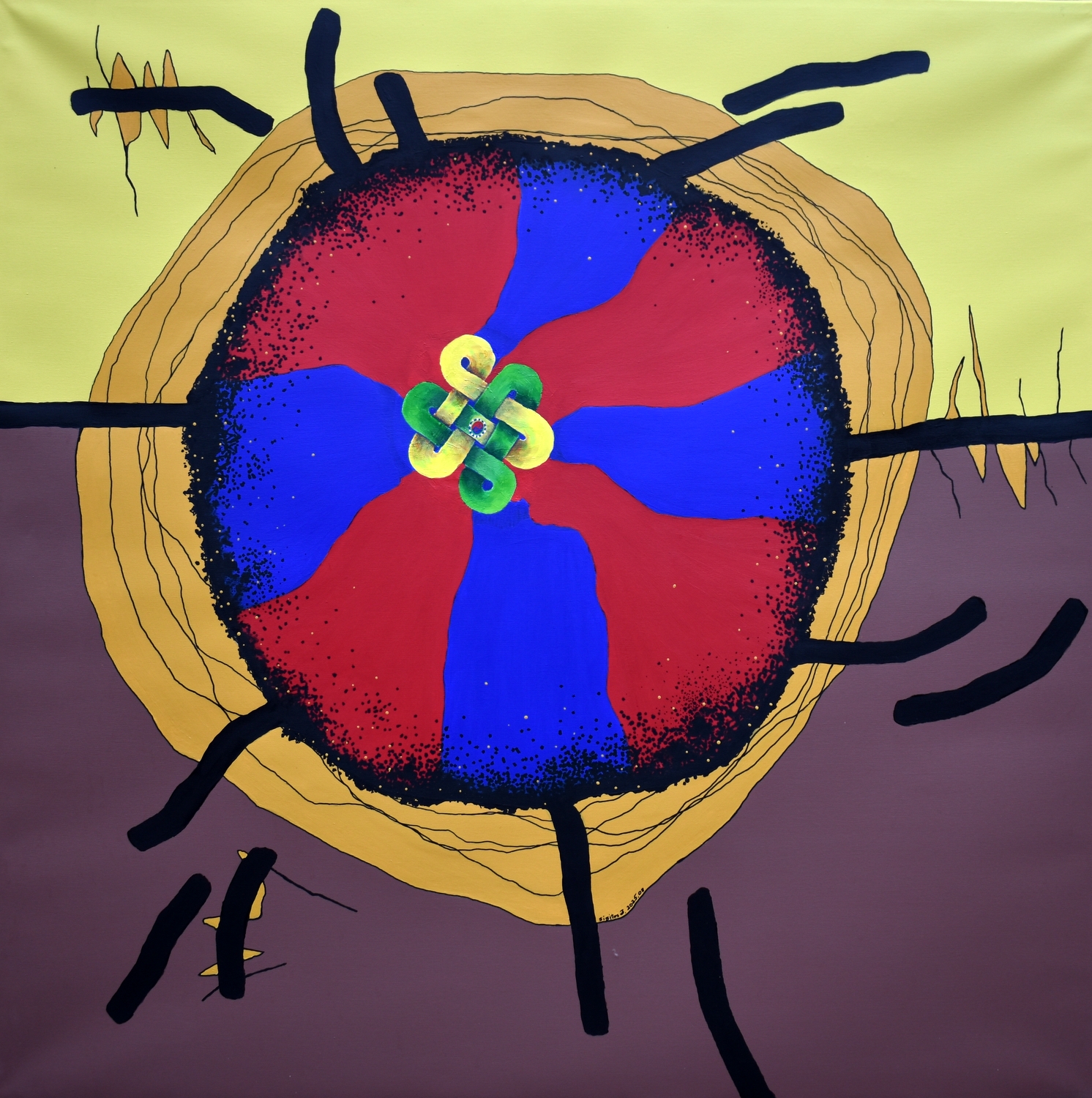 Laimės ratas, 2025, drobė, akrilas, 142x142 cm